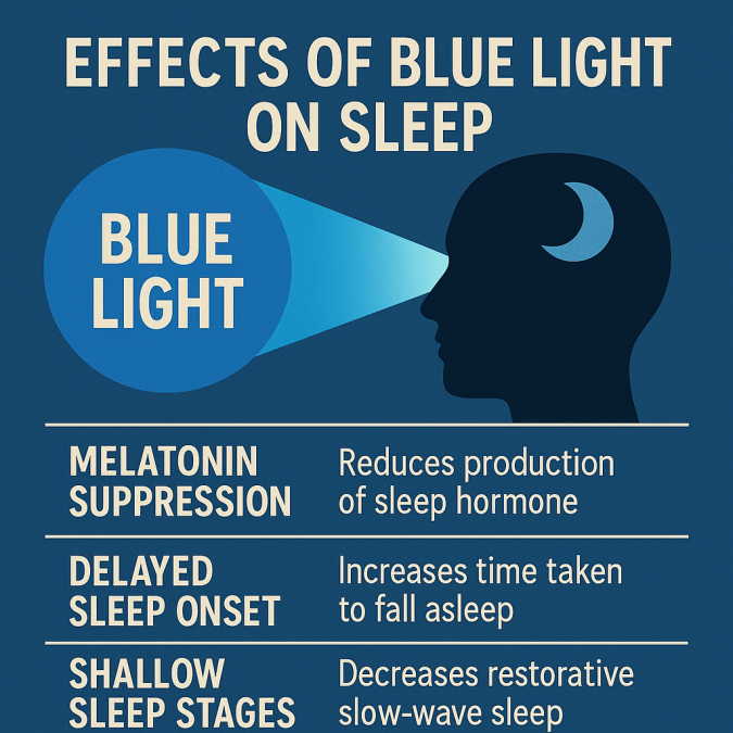 멜라토닌 분비는 최대 50% 감소하고, 수면 시작 시간은 평균 1시간 지연됩니다.